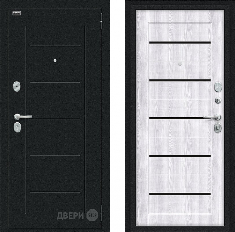Входная металлическая Дверь Bravo Борн Букле черное/Riviera Ice в Протвино 860х2050 мм