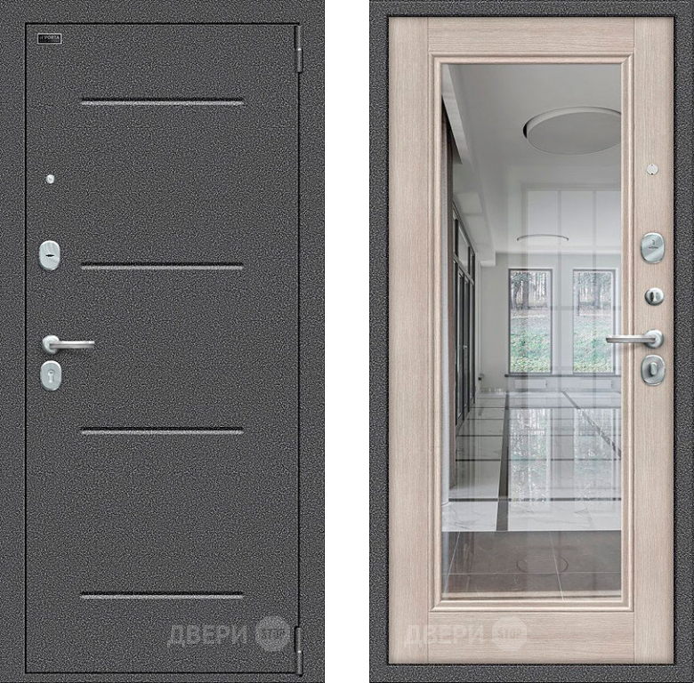 Входная металлическая Дверь Bravo Porta S-2 104/П61 с зеркалом Капучино в Протвино 860х2050 мм