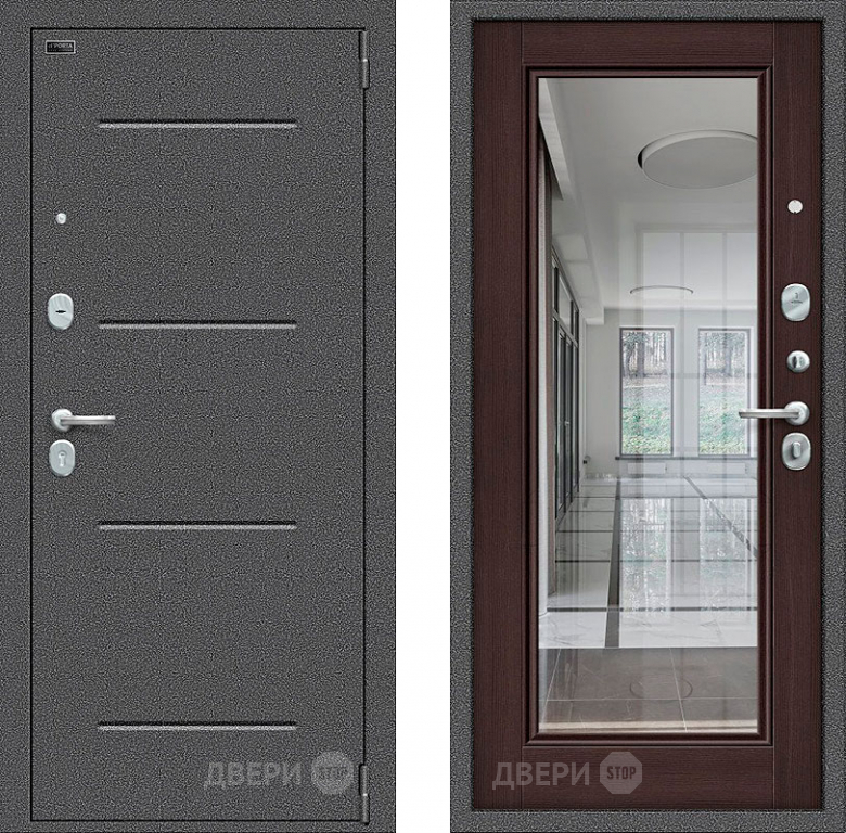 Входная металлическая Дверь Bravo Porta S-2 104/П61 с зеркалом венге в Протвино 860х2050 мм