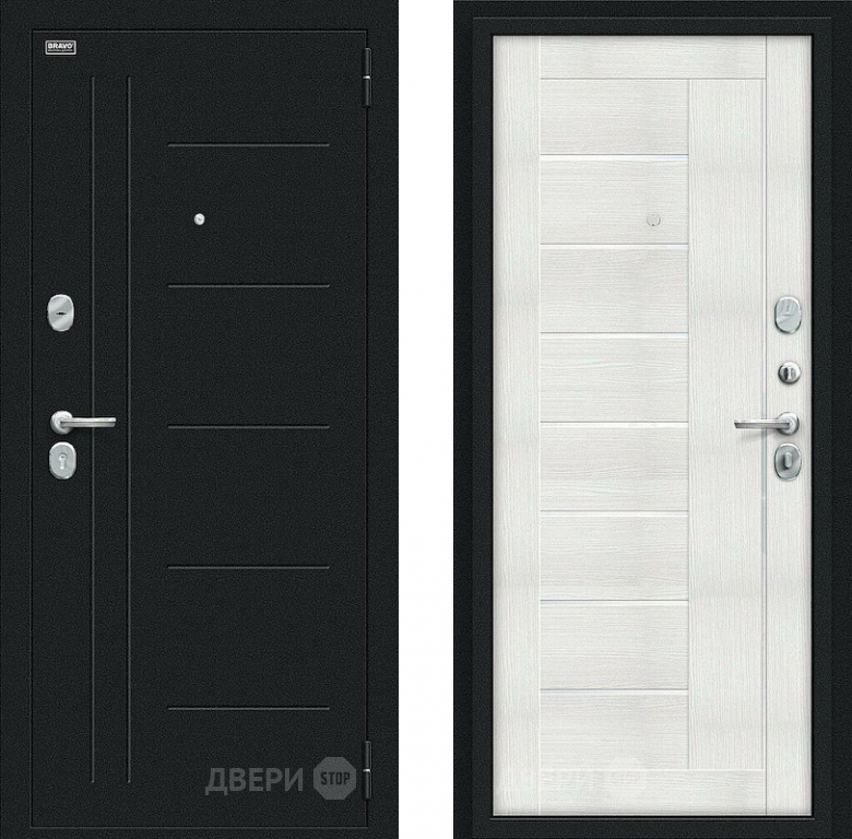 Входная металлическая Дверь Bravo Проф Букле черное/Bianco Veralinga в Протвино 860х2050 мм