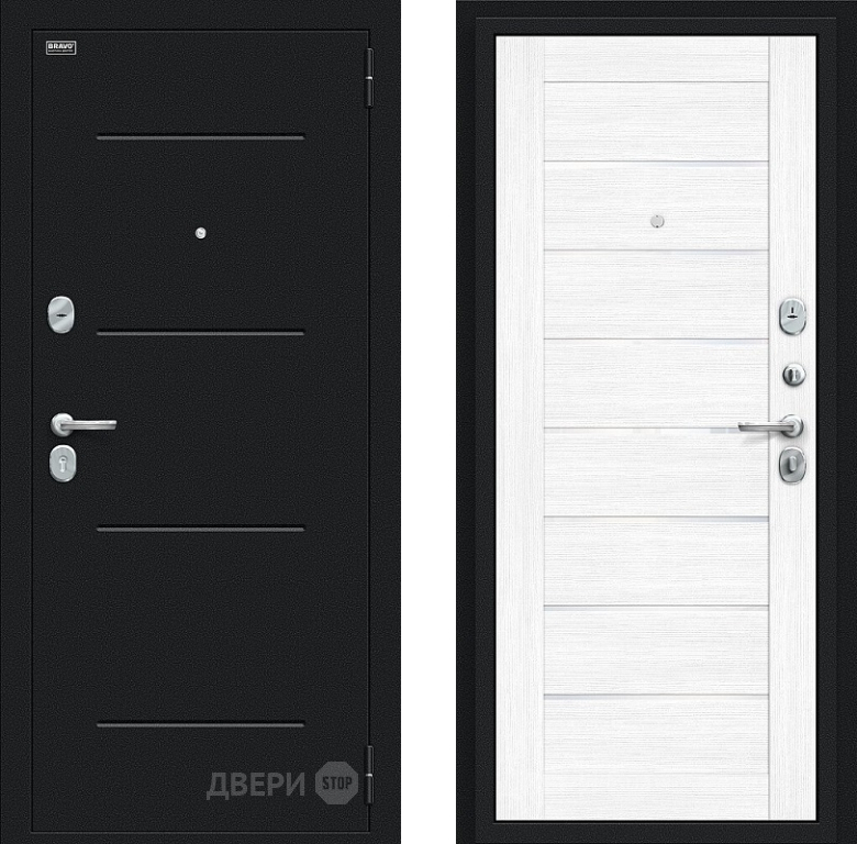 Входная металлическая Дверь Bravo Техно Букле черное/Snow Melinga в Протвино 860х2050 мм
