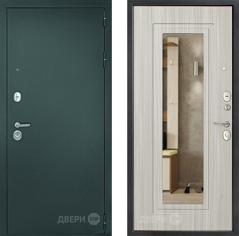 Входная металлическая Дверь Дверной Континент Рубикон Серебро Зеркало Сандал в Протвино 860х2050 мм