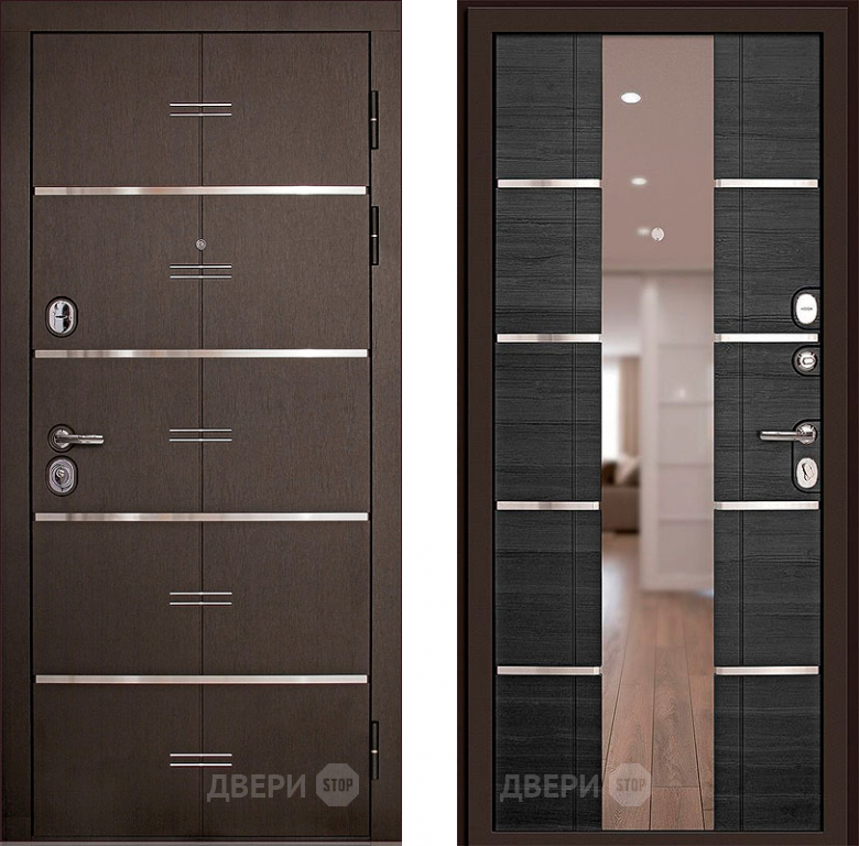 Входная металлическая Дверь (Дверной Континент) Савона с зеркалом Венге в Протвино 860х2050 мм