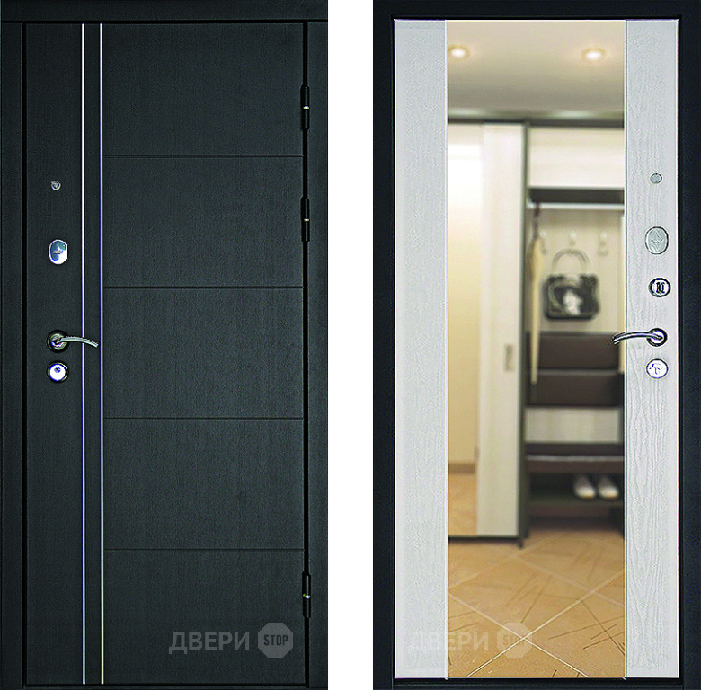 Входная металлическая Дверь Дверной Континент Тепло - Люкс Зеркало Беленый дуб в Протвино 860х2050 мм
