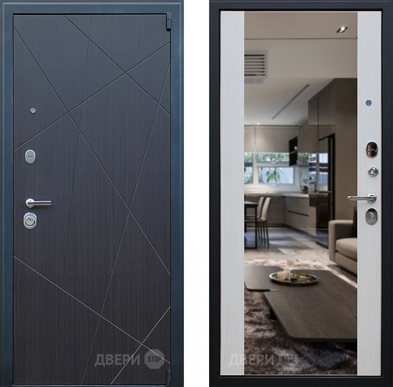Входная металлическая Дверь АСД Вектор с зеркалом Лиственница белая в Протвино 860х2050 мм