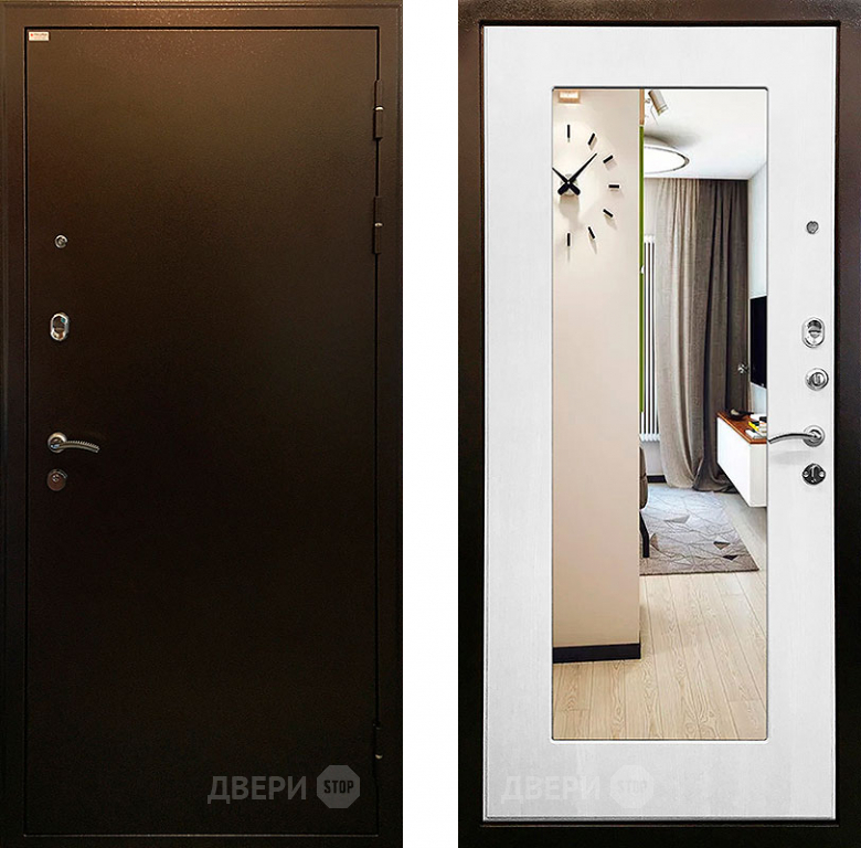 Входная металлическая Дверь Ратибор Милан 3К зеркало Белый ясень в Протвино 860х2050 мм