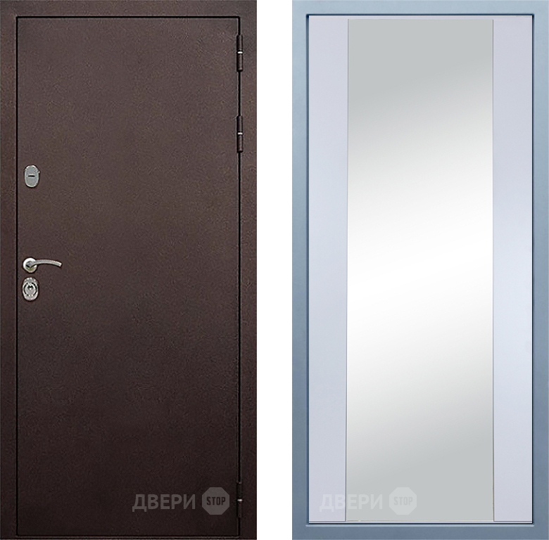 Входная Дверь Дива МД-40 Медь Д-15 Зеркало Белый 860x2050 мм