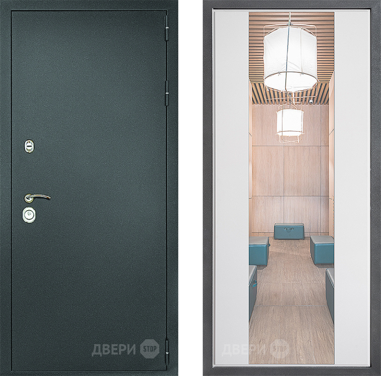 Входная Дверь Дверной континент Рубикон Серебро Дизайн ФЛЗ-1 Зеркало Белый софт 960x2050 мм