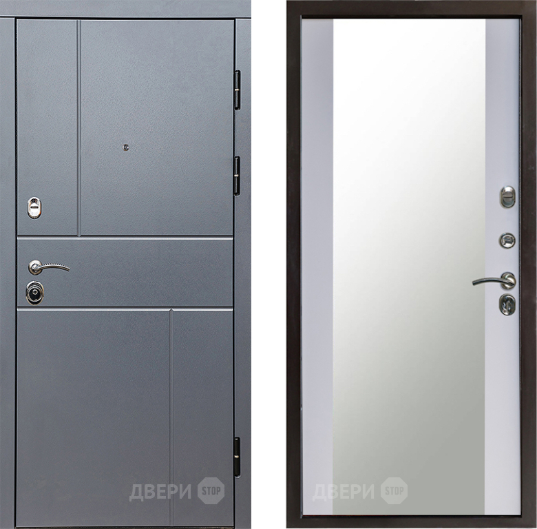 Входная Дверь Престиж Горизонт Грэй Зеркало Белый софт 860x2050 мм