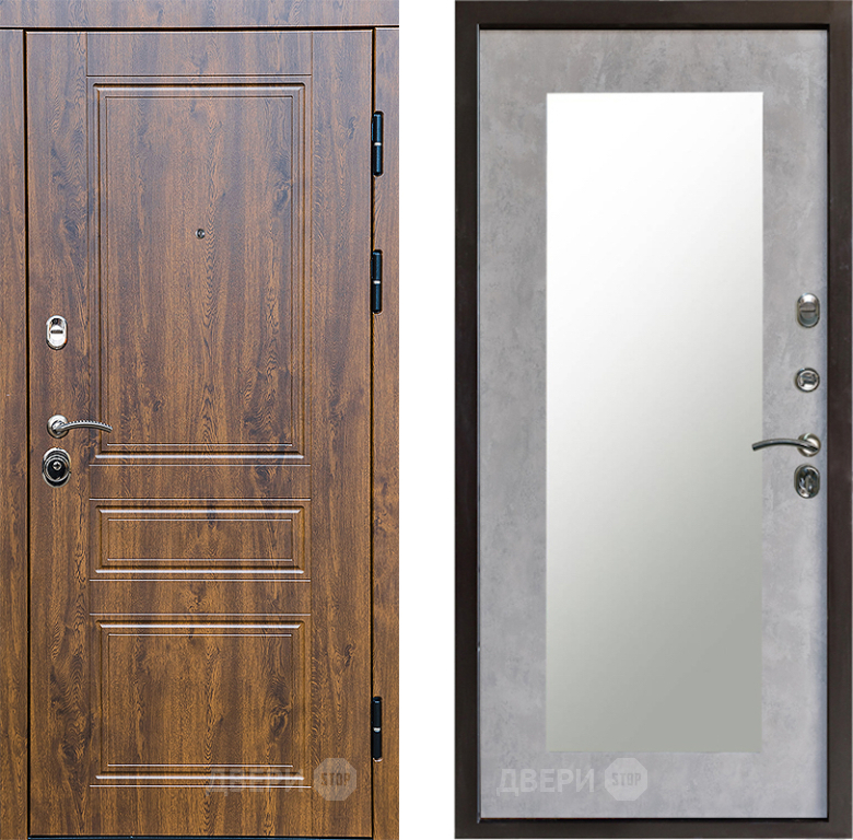 Входная Дверь Престиж Классика Дуб Зеркло Пастораль Бетон светлый 860x2050 мм