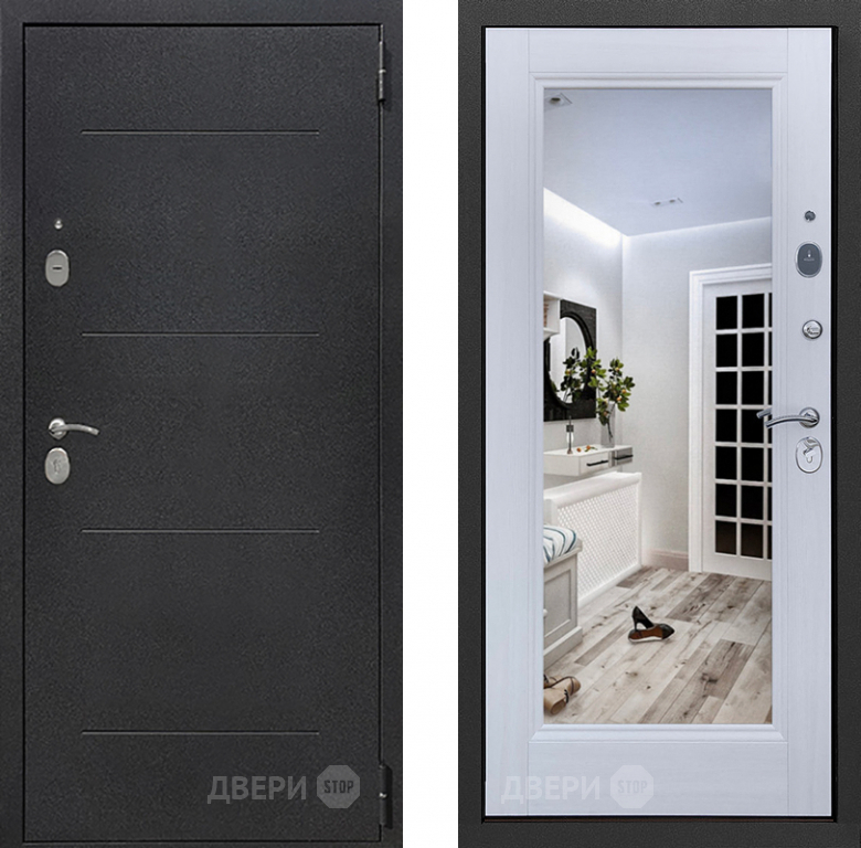 Входная металлическая Дверь Престиж 100 с зеркалом Шелк/Лиственница белая в Протвино 860х2050 мм