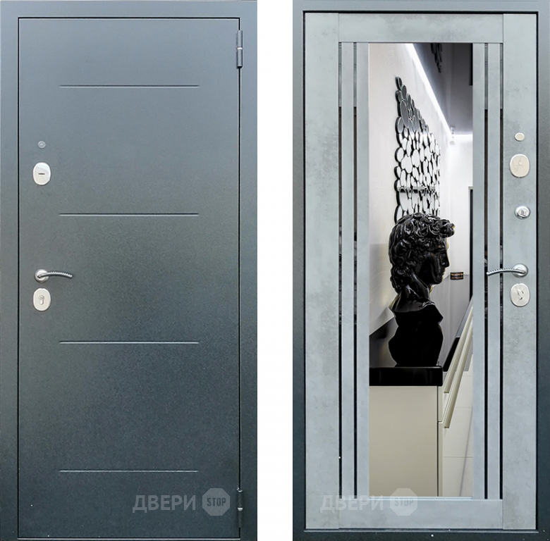 Входная металлическая Дверь Престиж Люкс с зеркалом Бетон в Протвино 860х2050 мм