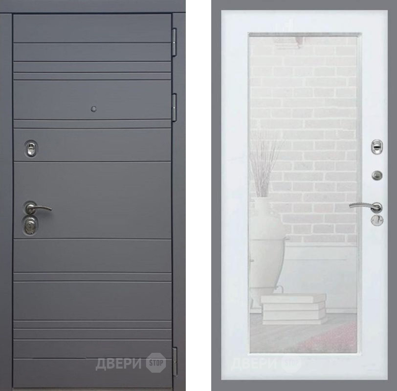 Входная Дверь Рекс (REX) 14 силк титан Зеркало Пастораль Силк Сноу 960x2050 мм