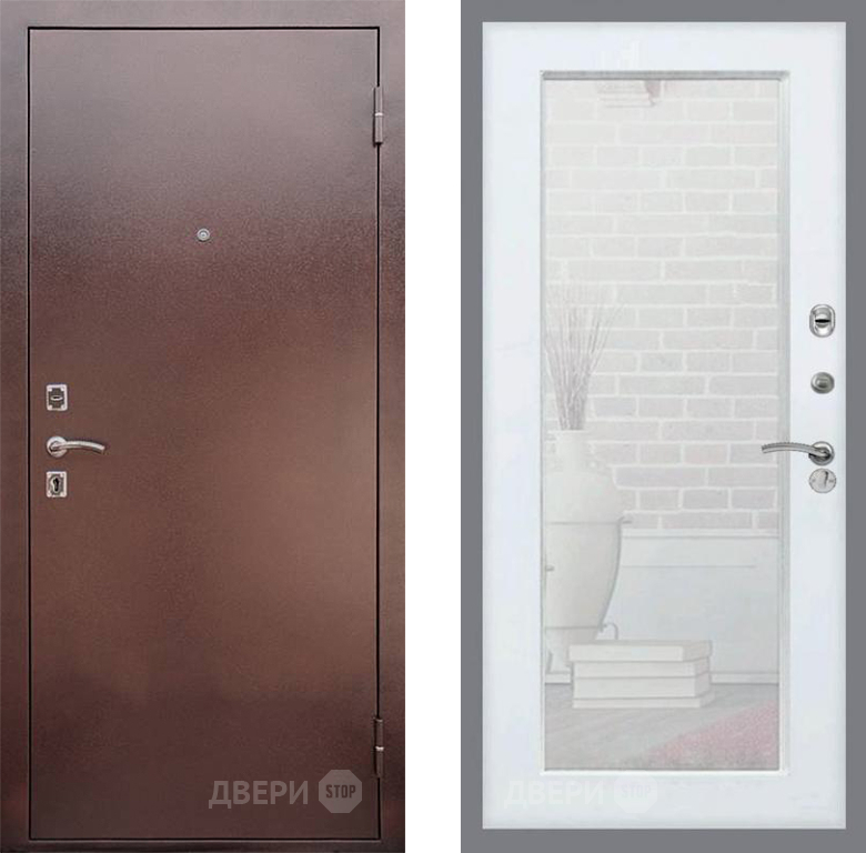 Входная Дверь Рекс (REX) 1 Зеркало Пастораль Силк Сноу 860x2050 мм