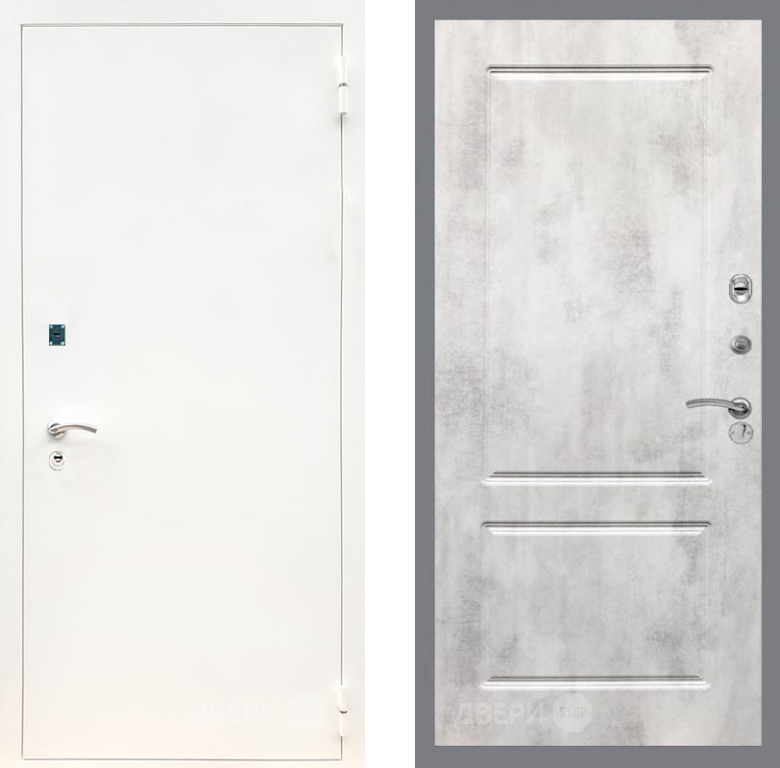 Входная Дверь Рекс (REX) 1А Белая шагрень FL-117 Бетон светлый 860x2050 мм