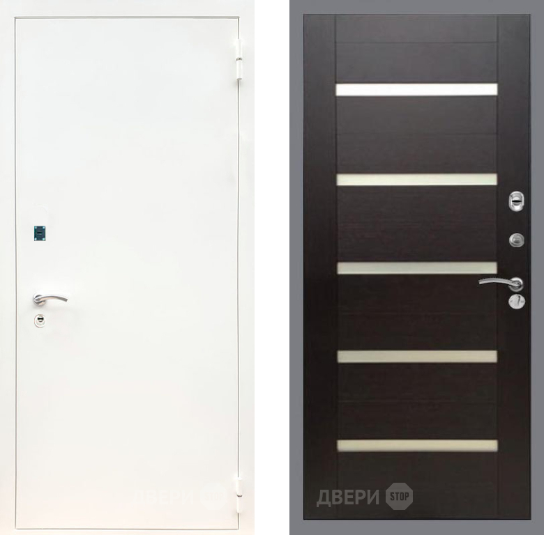 Входная Дверь Рекс (REX) 1А Белая шагрень СБ-14 стекло белое венге поперечный 960x2050 мм