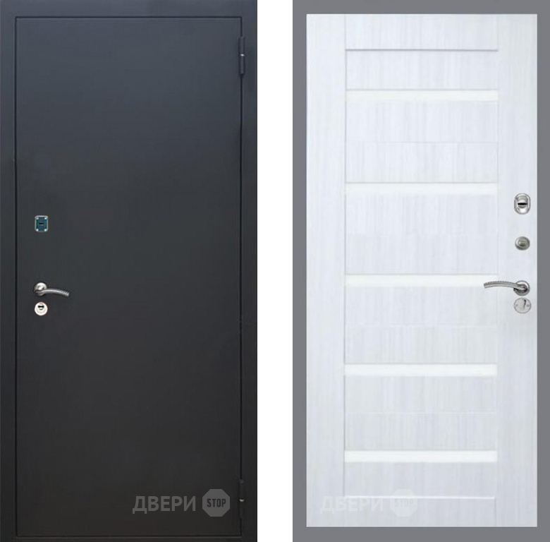 Входная Дверь Рекс (REX) 1A Черный Муар СБ-14 стекло белое Сандал белый 860x2050 мм