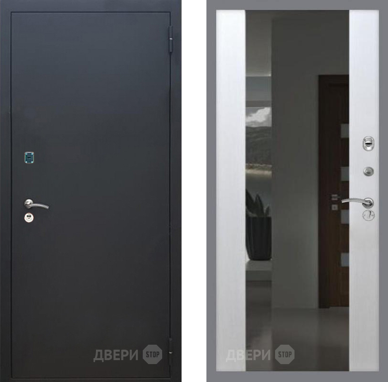Входная Дверь Рекс (REX) 1A Черный Муар СБ-16 с Зеркалом Лиственница беж 860x2050 мм