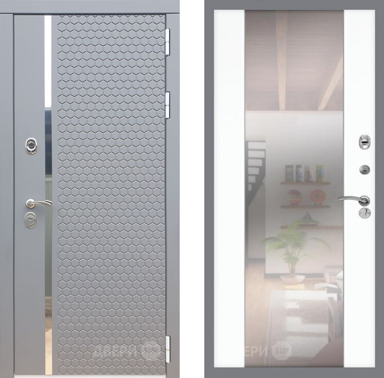 Входная Дверь Рекс (REX) 24 СБ-16 Зеркало Силк Сноу 860x2050 мм