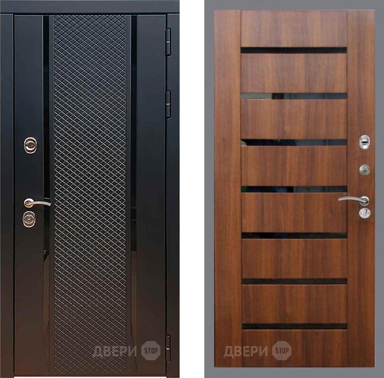 Входная Дверь Рекс (REX) 25 СБ-14 стекло черное Орех бренди 860x2050 мм