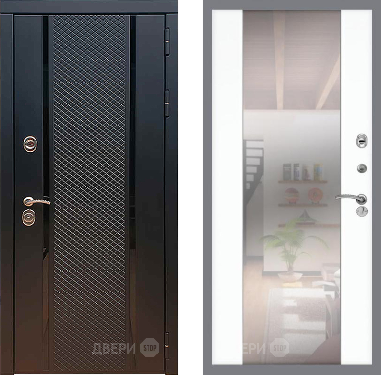 Входная Дверь Рекс (REX) 25 СБ-16 Зеркало Силк Сноу 860x2050 мм