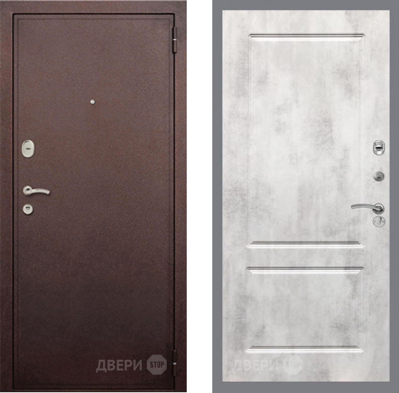 Входная Дверь Рекс (REX) 2 Медный Антик FL-117 Бетон светлый 860x2050 мм
