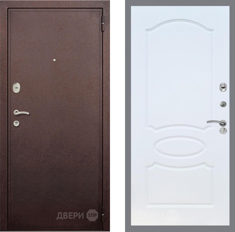 Входная Дверь Рекс (REX) 2 Медный Антик FL-128 Белый ясень 860x2050 мм