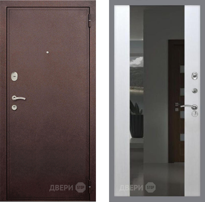Входная Дверь Рекс (REX) 2 Медный Антик СБ-16 с Зеркалом Лиственница беж 860x2050 мм