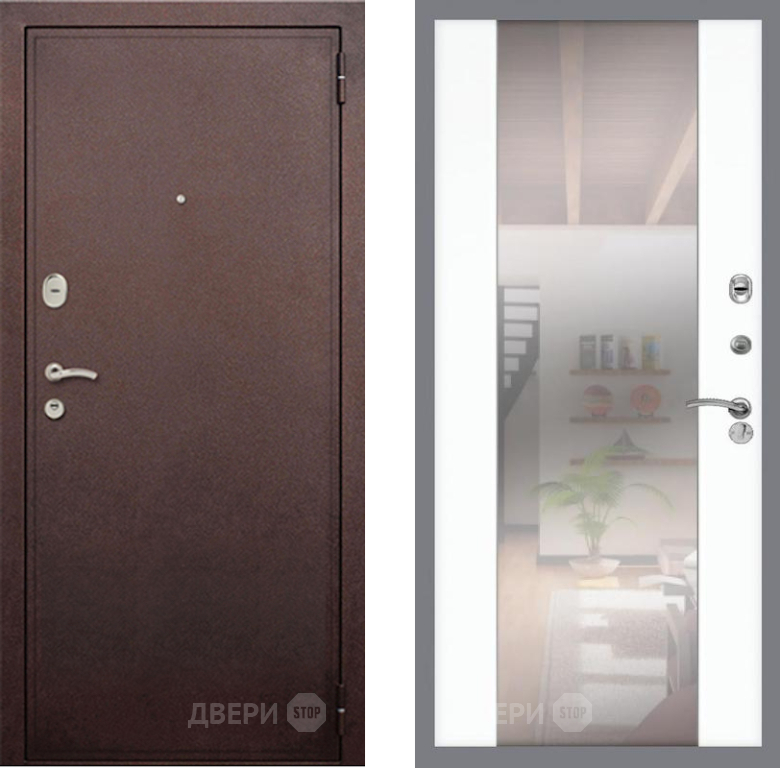 Входная Дверь Рекс (REX) 2 Медный Антик СБ-16 Зеркало Силк Сноу 960x2050 мм