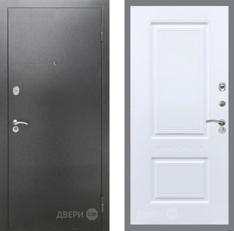 Входная Дверь Рекс (REX) 2А Серебро Антик Смальта Силк Сноу 860x2050 мм