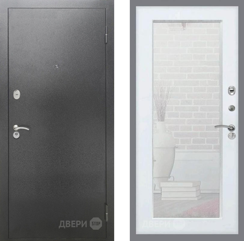 Входная Дверь Рекс (REX) 2А Серебро Антик Зеркало Пастораль Белый ясень 860x2050 мм