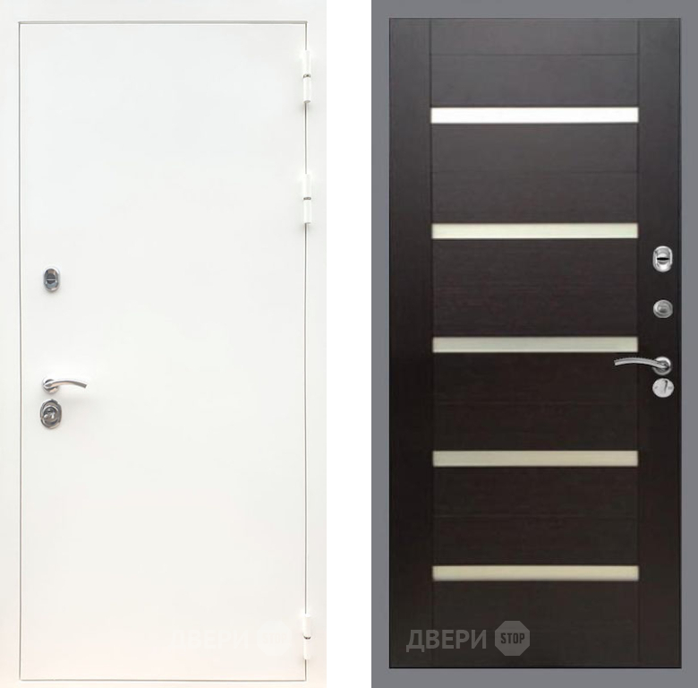 Входная Дверь Рекс (REX) 5 Белая Шагрень СБ-14 стекло белое венге поперечный 860x2050 мм