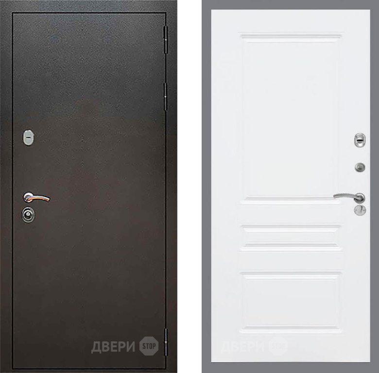 Входная Дверь Рекс (REX) 5 Серебро Антик FL-243 Силк Сноу 860x2050 мм