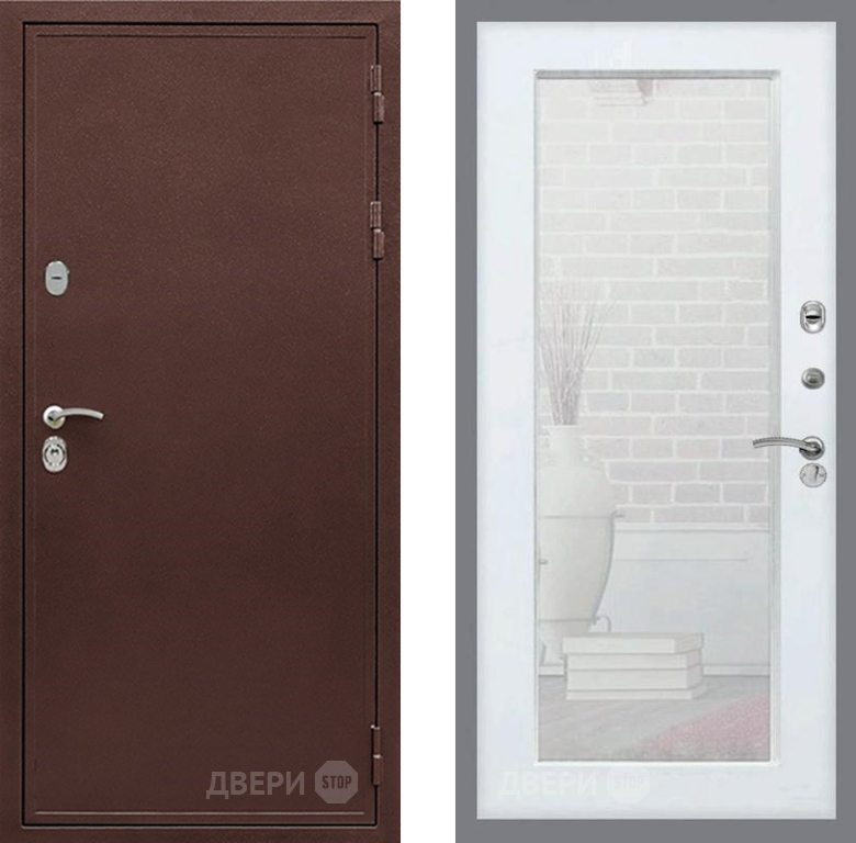 Входная Дверь Рекс (REX) 5А Зеркало Пастораль Силк Сноу 860x2050 мм