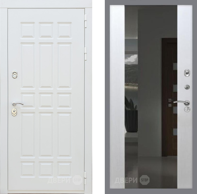 Входная Дверь Рекс (REX) 8 Силк Сноу СБ-16 Зеркало Белый ясень 860x2050 мм