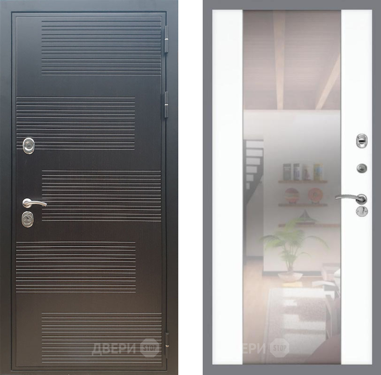 Входная Дверь Рекс (REX) премиум 185 СБ-16 Зеркало Силк Сноу 860x2050 мм