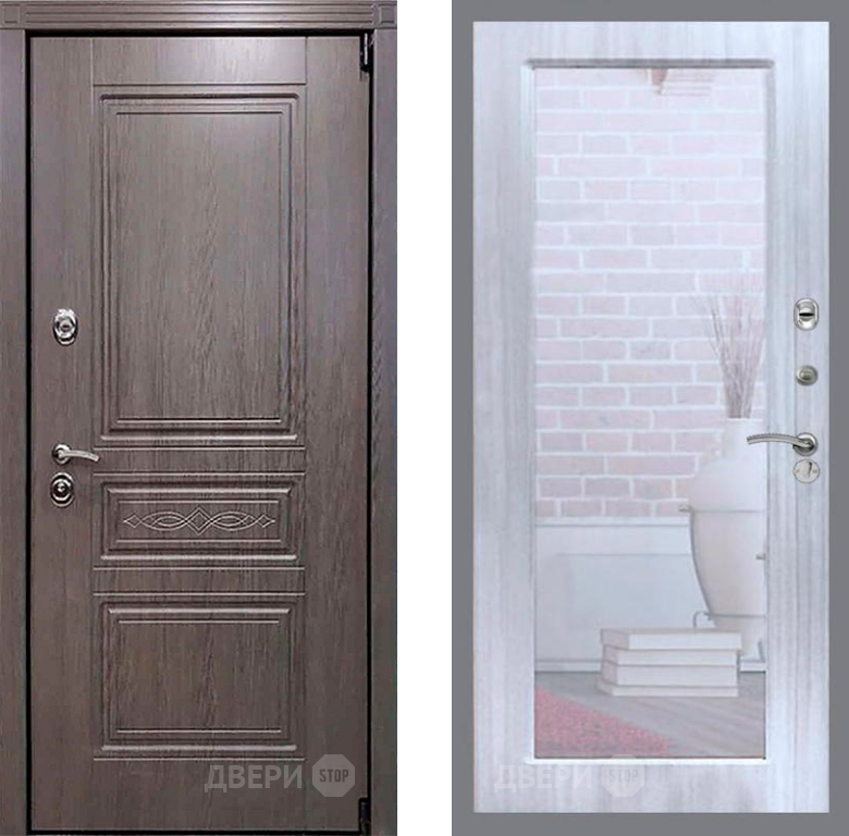 Входная Дверь Рекс (REX) Пренмиум-S Зеркало Пастораль Сандал белый 860x2050 мм