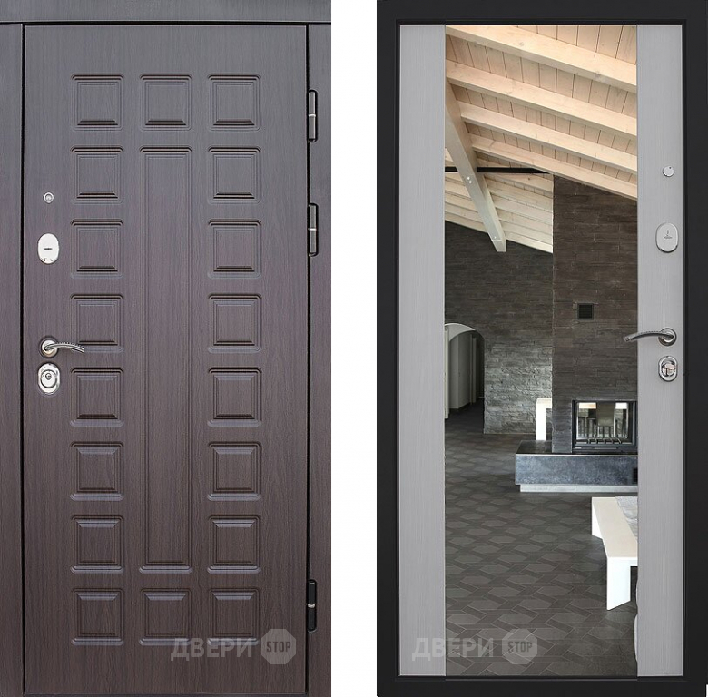Входная металлическая Дверь S01 2К Зеркало Лиственница белая в Протвино 860х2050 мм