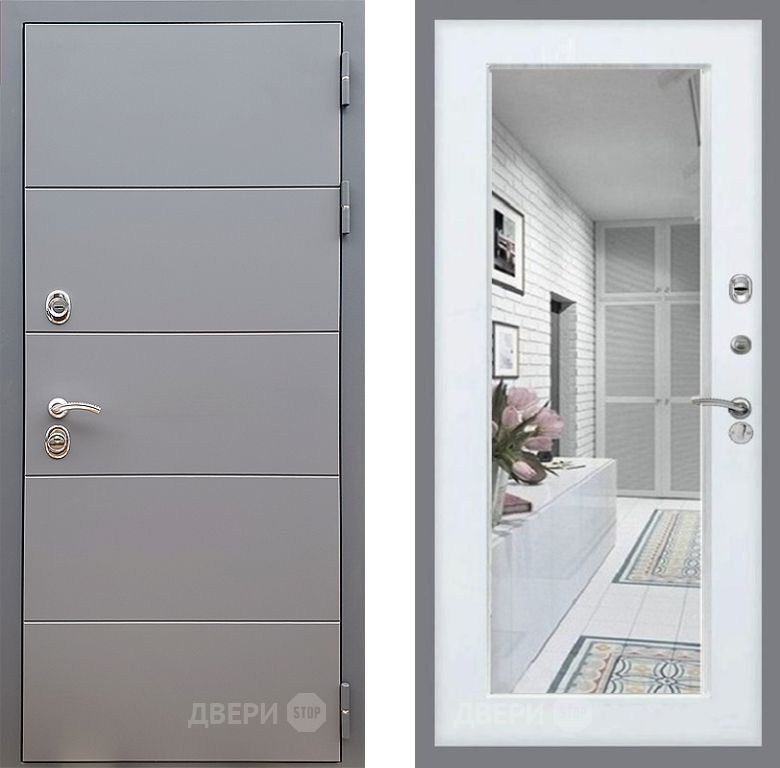 Входная Дверь Стоп АРТ ГРАФИТ Зеркало Белый ясень 960x2050 мм