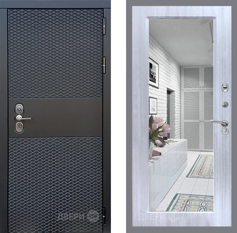 Входная Дверь Стоп БЛЭК CISA Зеркало Сандал белый 960x2050 мм