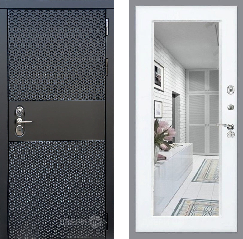 Входная Дверь Стоп БЛЭК CISA Зеркало Силк Сноу 960x2050 мм
