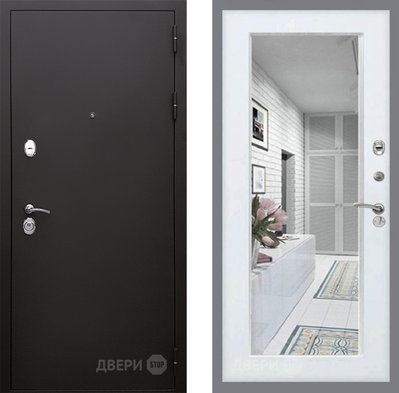 Входная Дверь Стоп КЛАССИК Шагрень Зеркало Белый ясень 960x2050 мм