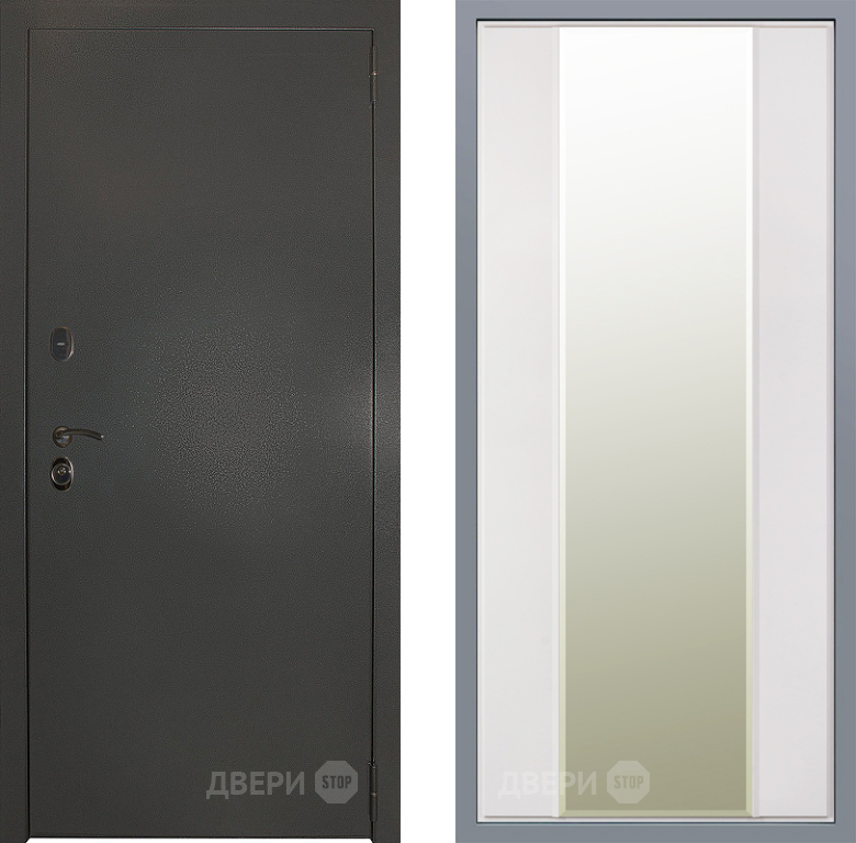 Входная Дверь Заводские двери Эталон 3к антик серебро Зеркало Макси Белый матовый 860x2050 мм