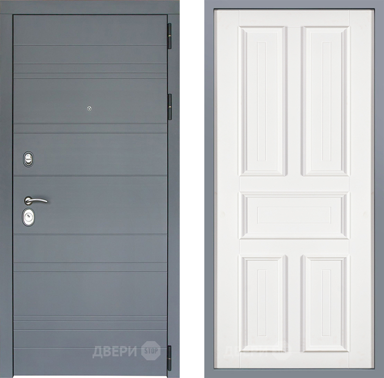 Входная Дверь Заводские двери Лира Софт графит Уругвай Белый софт 860x2050 мм