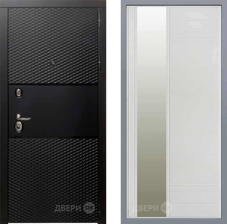 Входная Дверь Заводские двери Тефлон Зеркало Лира Белый софт 860x2050 мм