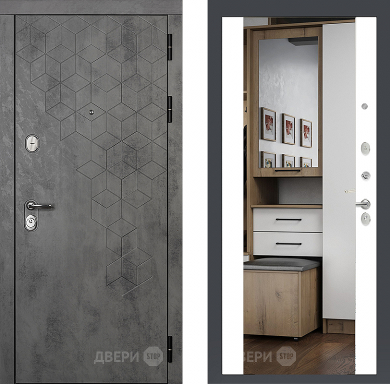 Входная металлическая Райтвер Бетон 1501 с зеркалом Белый матовый в Протвино 860х2050 мм